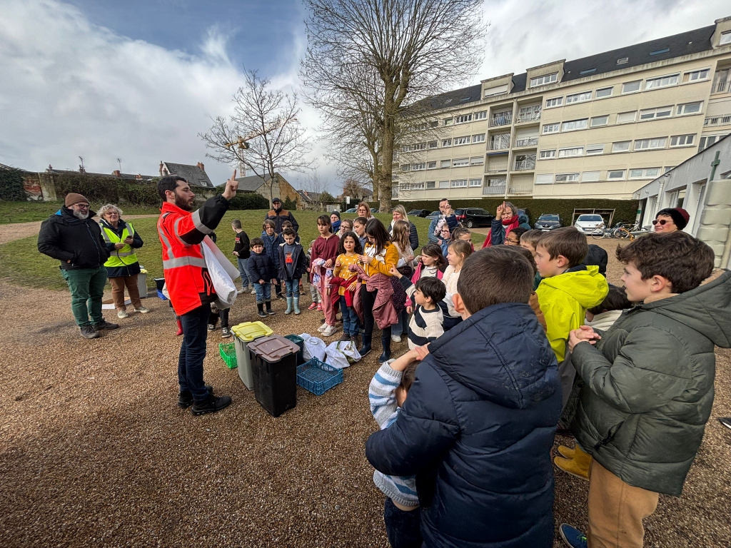 Après un jeu de tri des déchets animé par Marc de Kyrielle, nous avons pris nos traditionnelles brouettes pour cheminer dans les rues à la recherche des déchets. Les enfants étaient enthousiastes et pleins d’énergie.