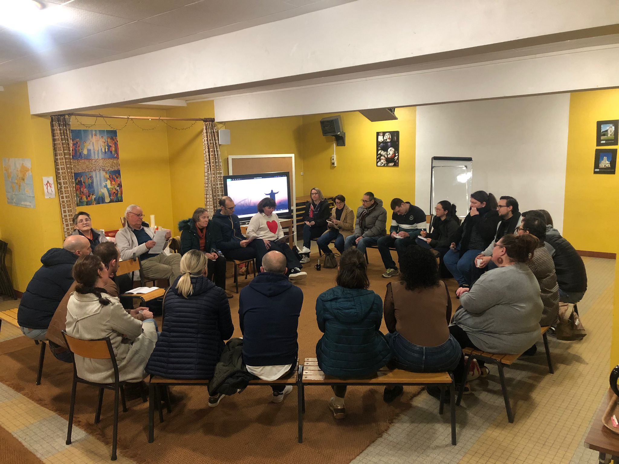 La soirée a commencé par un temps d’échanges en petits groupes. Les parents ont pu partager ce qu’ils aiment particulièrement chez leur enfant, les raisons qui les ont conduits à demander le baptême ou la première des communions, ou encore leurs souvenirs personnels liés aux sacrements. Ce temps d’écoute et de dialogue a permis de créer rapidement un climat de confiance.